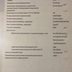 ЭПТС на руках!!!!Авто Ford Mustang 2,3 ecoboost чистый 2019 по стикеру.