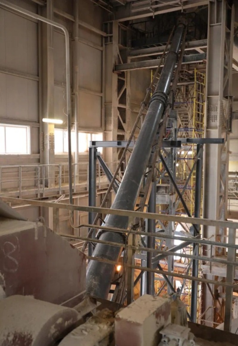Проблему устранили в середине мая. Во время капремонта мельницы подрядная организация изменила конструкцию возвратной трубы (или пневмотранспортного жёлоба — так правильно называется этот агрегат), дополнив её пневматическим сопровождением.