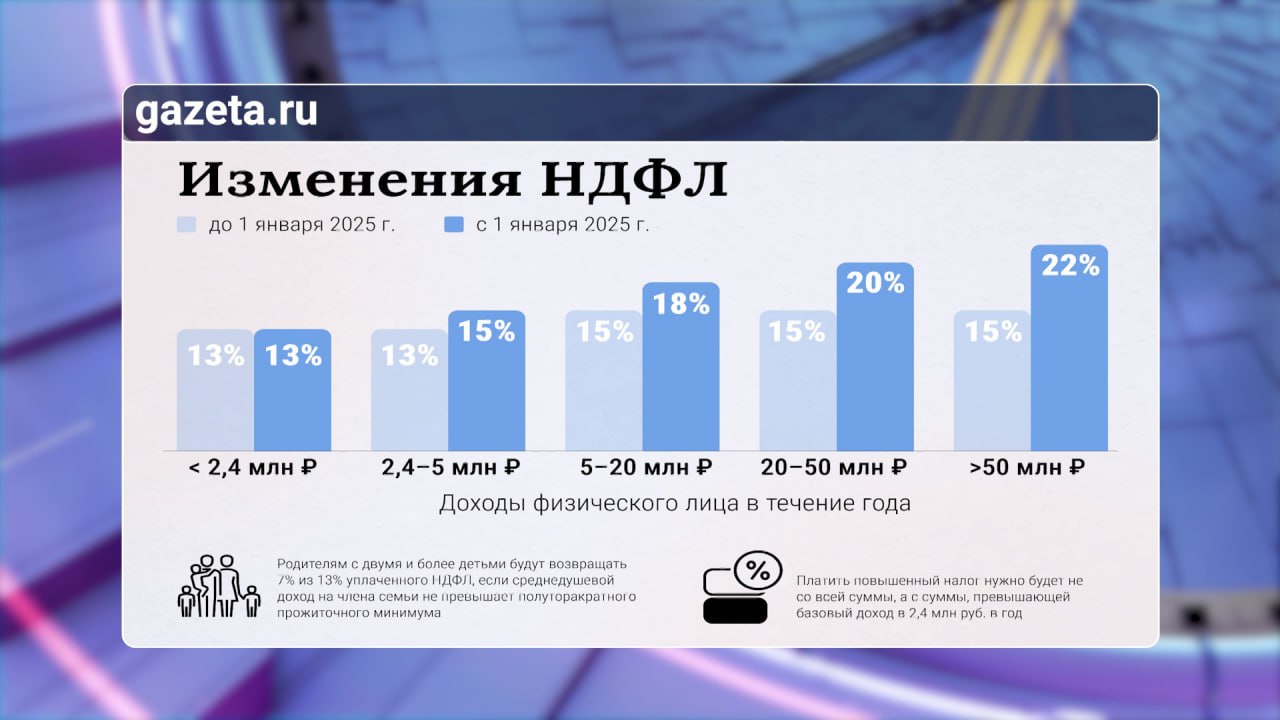 Ранее ставка НДФЛ составляла 13% для всех граждан, за исключением тех, чей годовой доход превышал 5 млн рублей — они платили 15%.