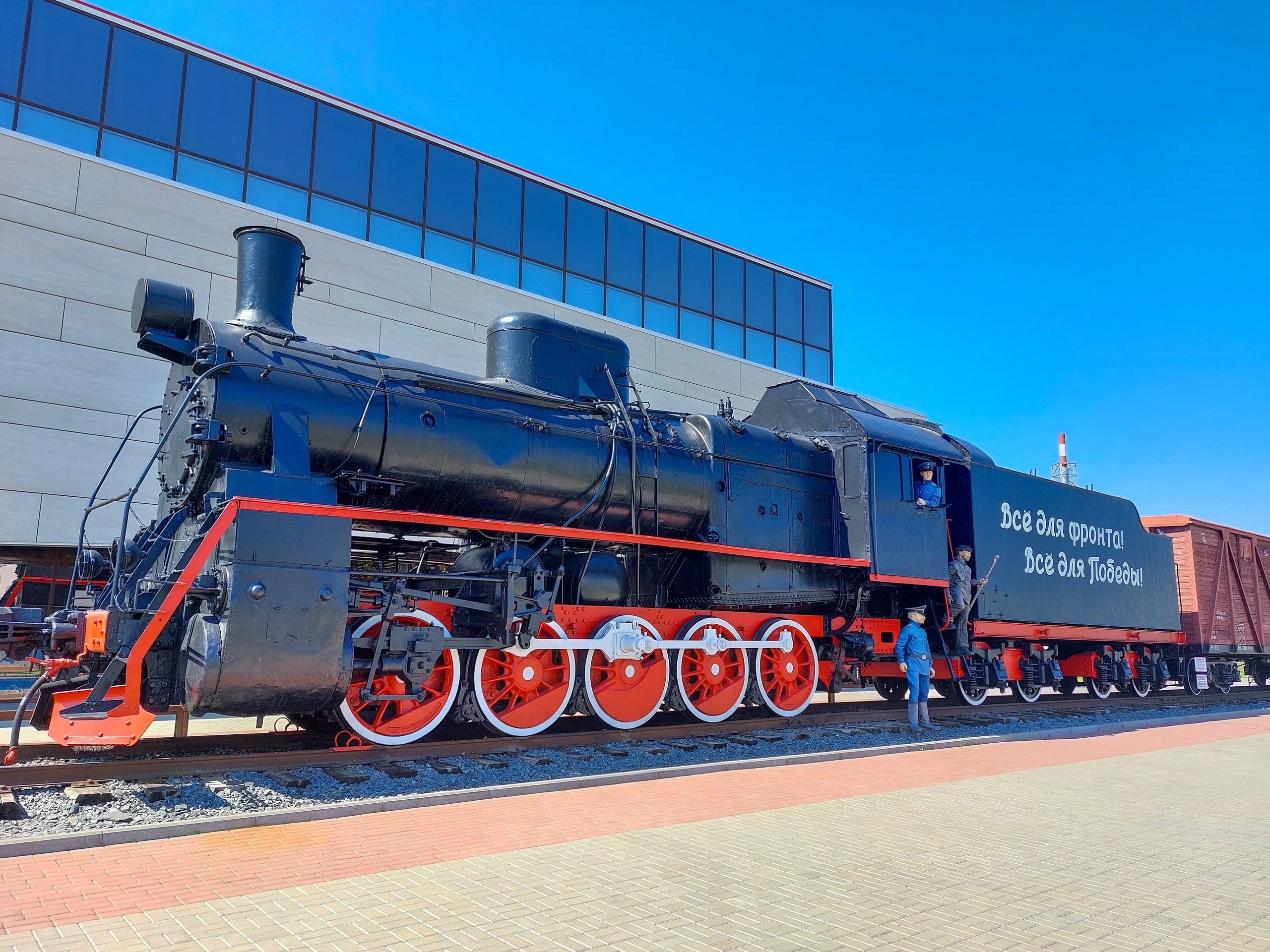 Железнодорожный состав, расположенный на открытой экспозиционной площадке музея «Битва за оружие Великой Победы» посвящён подвигу железнодорожников во время войны.