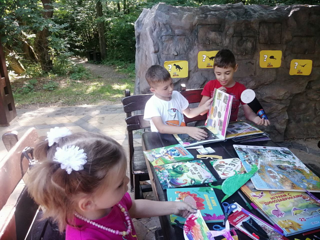 Посетители парка динозавров познакомились с замечательной серией книг о животных «Занимательная зоология». Дети вместе с родителями узнали много нового об известных представителях животного мира, о которых в необычной форме рассказывают знаменитые личности: актеры, художники, писатели.