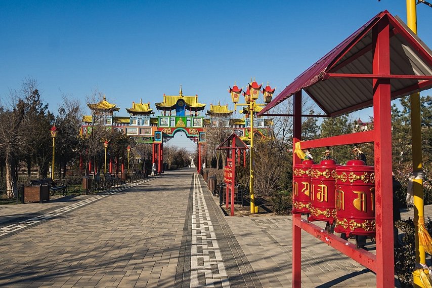 Фото: Анна ШишкинаТы — словно в другой реальности. Вот знакомые и понятные «хрущёвки», а рядом — непривычная буддийская архитектура: пагоды, ворота, ступы, молитвенные барабаны... И речь кругом русская, а лица — восточные. Вот так «смена картинки»! Хотя, слышен и калмыцкий. Местные говорят, что он схож с монгольским и они без труда понимают гостей оттуда.