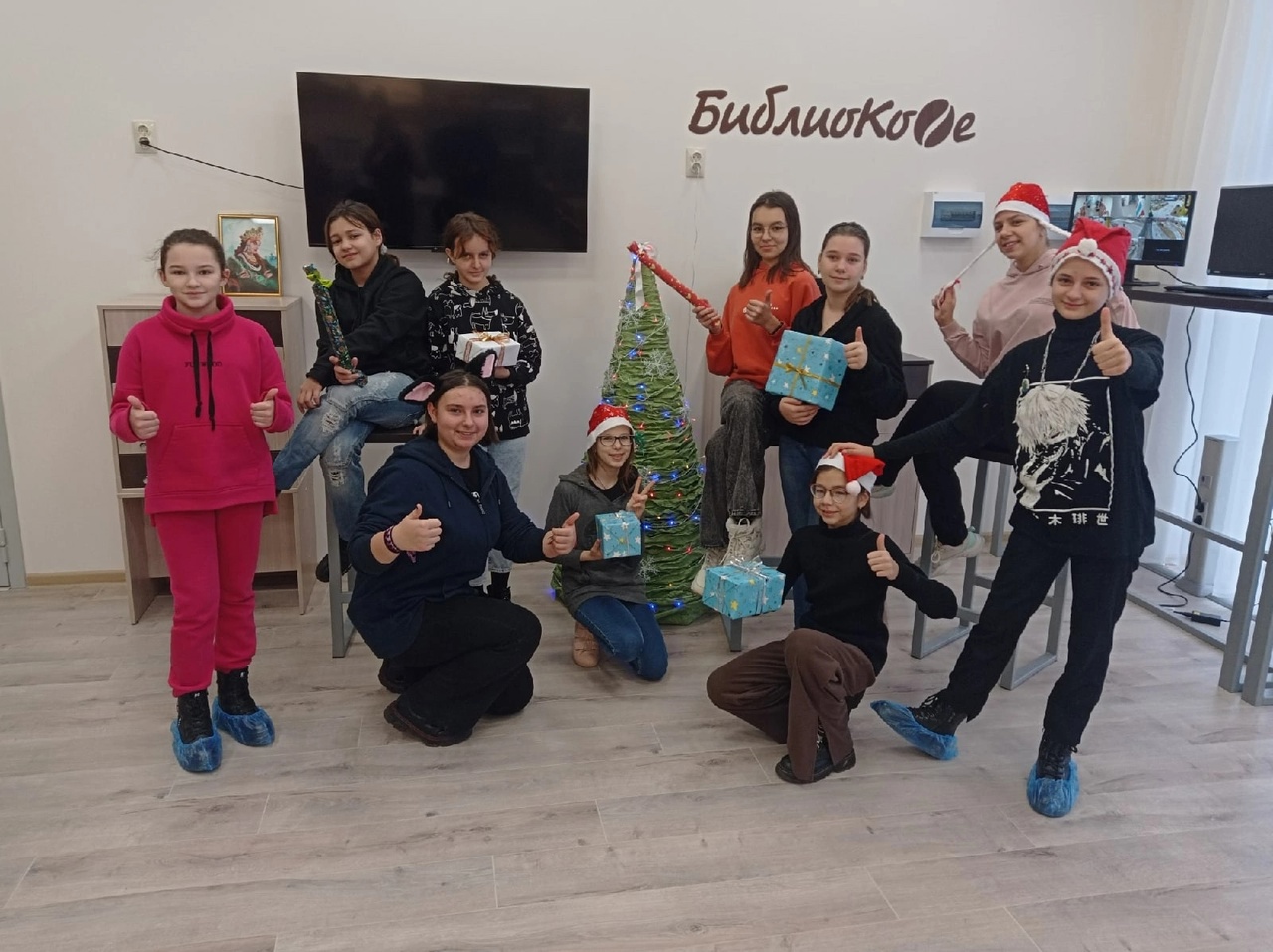 Недавно молодёжь посёлка Разумное поучаствовала в фееричном библиотечном квизе «Волшебный праздник Новый год!». Мальчишки и девчонки объединились в команду с вкусным названием «Оливье», совместными усилиями составили анаграммы, решили логические загадки, станцевали потрясающий танец «Снежный вихрь» и даже поучаствовали в битве «Дедов Морозов».