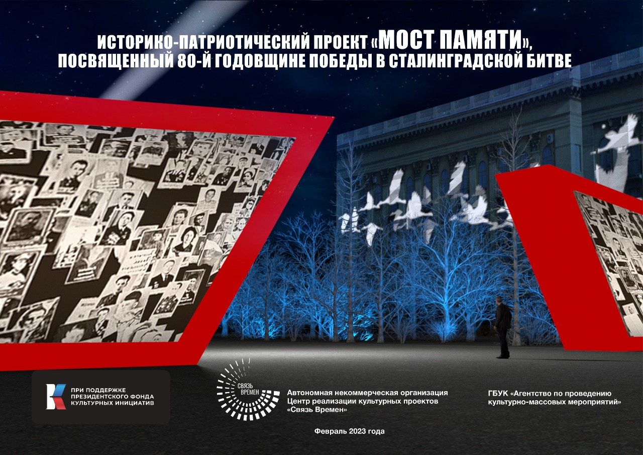 Аудиовизуальные произведения искусства будут показаны на зданиях и сооружениях, которые располагаются от Мамаева кургана до Аллеи Героев и Центральной набережной Волгограда. Так образуется символический «Мост Памяти» с использованием современного оборудования.