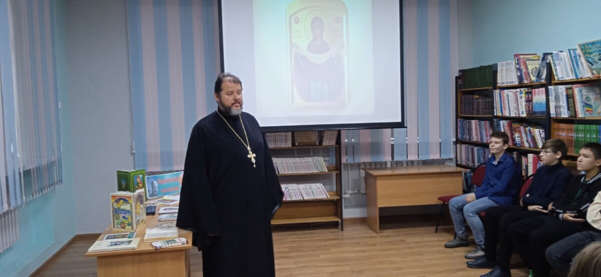 13 октября в Волоконовской Центральной Библиотеке для учащихся 7 — х классов МБОУ «Волоконовская СОШ № 1» состоялся час православия «Благодатный Покров». Встреча в рамках совместной работы школы, библиотеки и Успенского храма по духовно нравственному воспитанию молодёжи. Мероприятие приурочено к празднику Покрова Пресвятой Богородицы. Благочинный Волоконовского округа, настоятель Храма Успения Пресвятой Богородицы протоиерей Сергий Вырвыкишка рассказал детям об истории праздника.