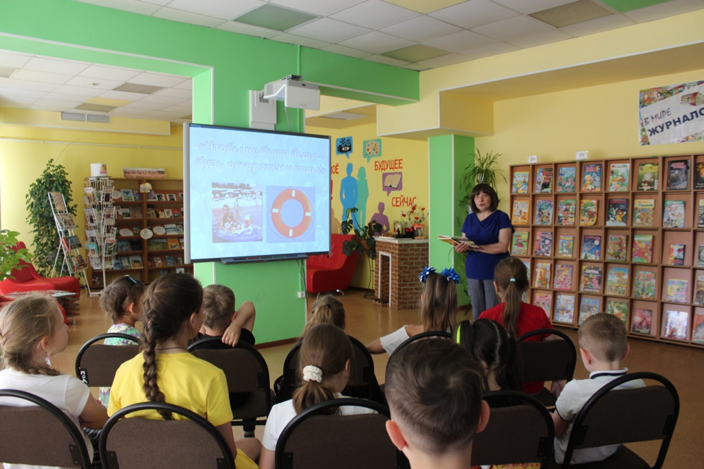 В рамках Единого дня безопасности «Безопасное детство» в Центральной детской библиотеке прошел час безопасности «Будьте осторожны на водоёмах» для ребят летнего лагеря «Радуга» городской школы №3.