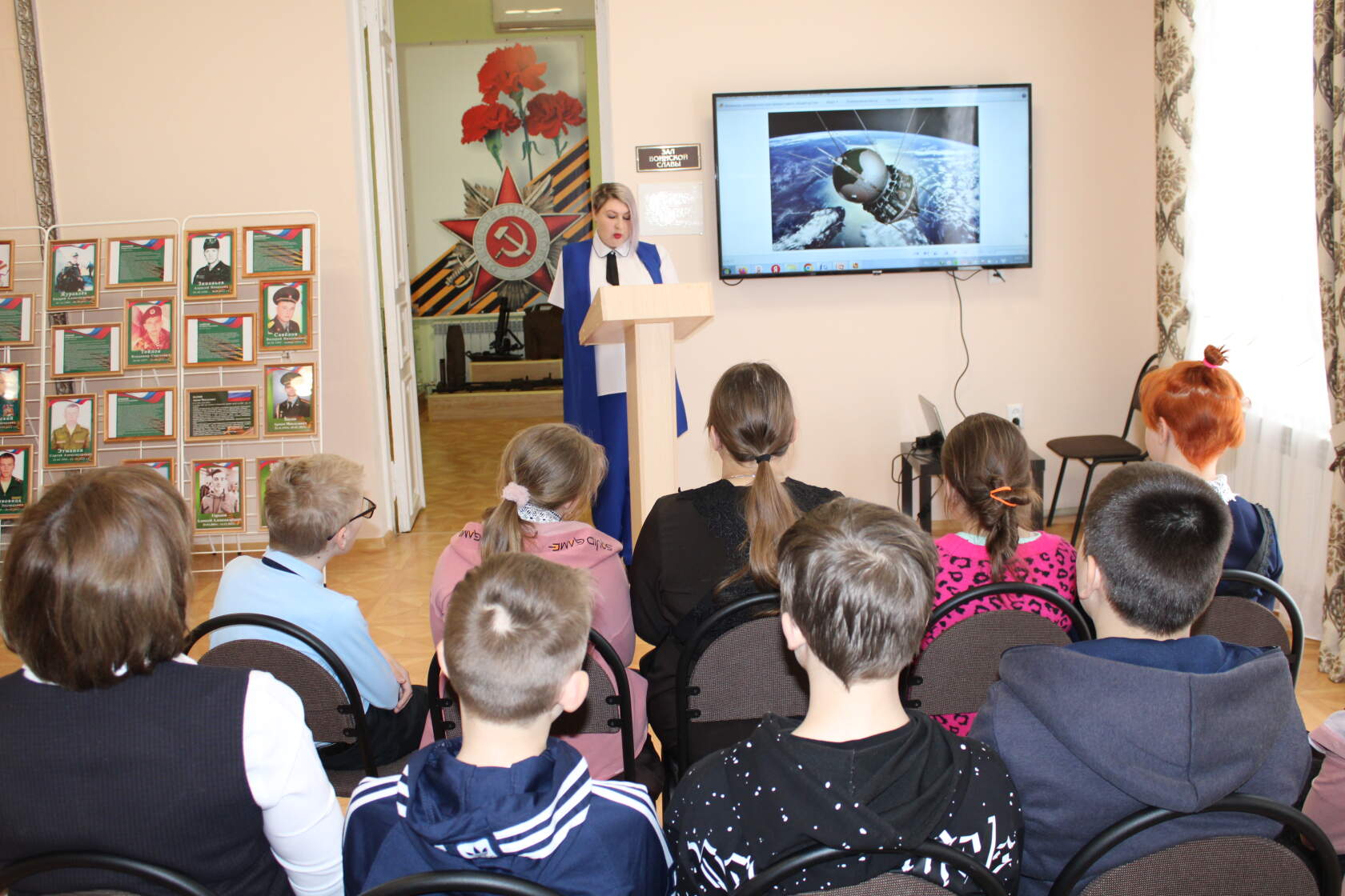 Сотрудник музея Лукьянова Е.Н. 13 апреля 2023 года провела для учащихся средней школы села Волоконовка интеллектуально-познавательную игру, посвящённую Дню космонавтики, «История космических побед. Первый полёт в космос».
