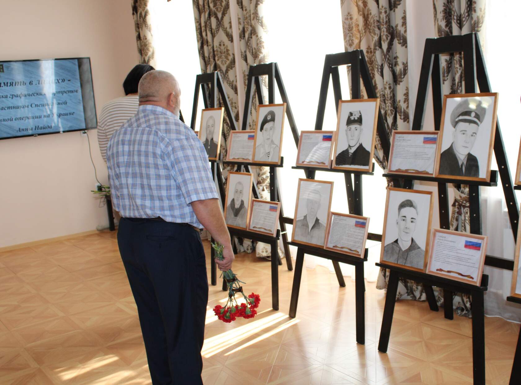 Со слезами на глазах – слезами утраты и одновременно благодарности за то, что память о родных людях жива, родственники преподнесли автору портретов цветы.