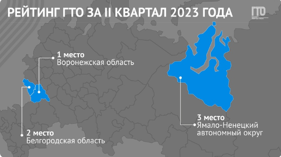 По итогам II квартала 2023 года лидерами Рейтинга ГТО остаются Воронежская область и Ямало-Ненецкий автономный округ.