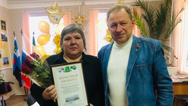 Глава администрации Валуйского городского округа провёл очередной выездной приём граждан. Алексей Дыбов перед его началом поздравил с юбилеем главу территориальной Борчанской администрации Людмилу Шарудину с юбилеем, вручил ей Почётную грамоту.