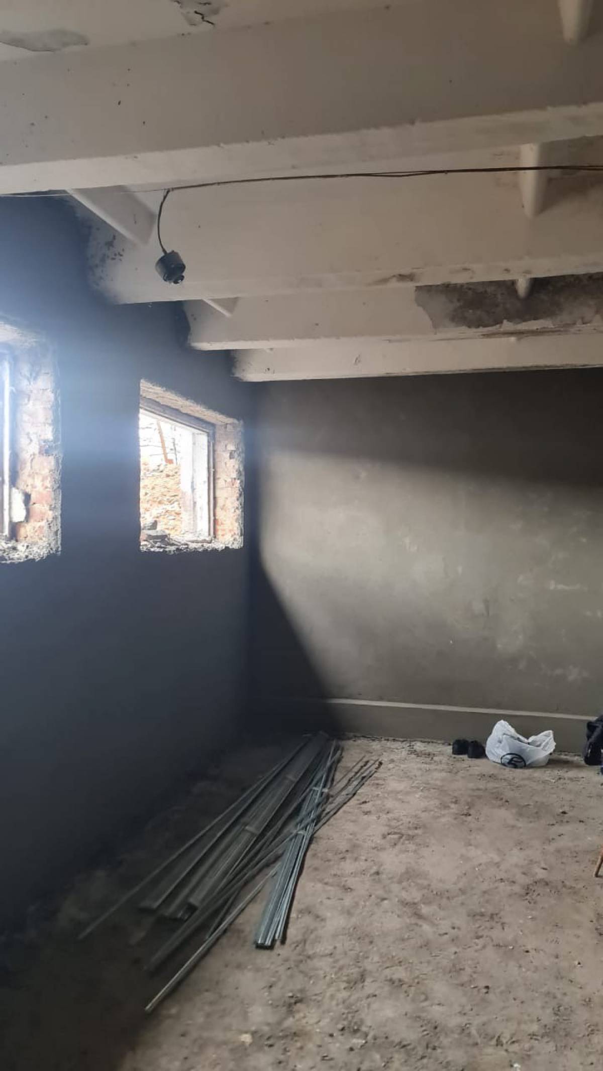 Ремонт начался в этом году: уже выполнены демонтажные работы, монтаж черновой сантехники, залит черновой пол, рабочие завершают штукатурку стен, устанавливают стропильную систему крыши.