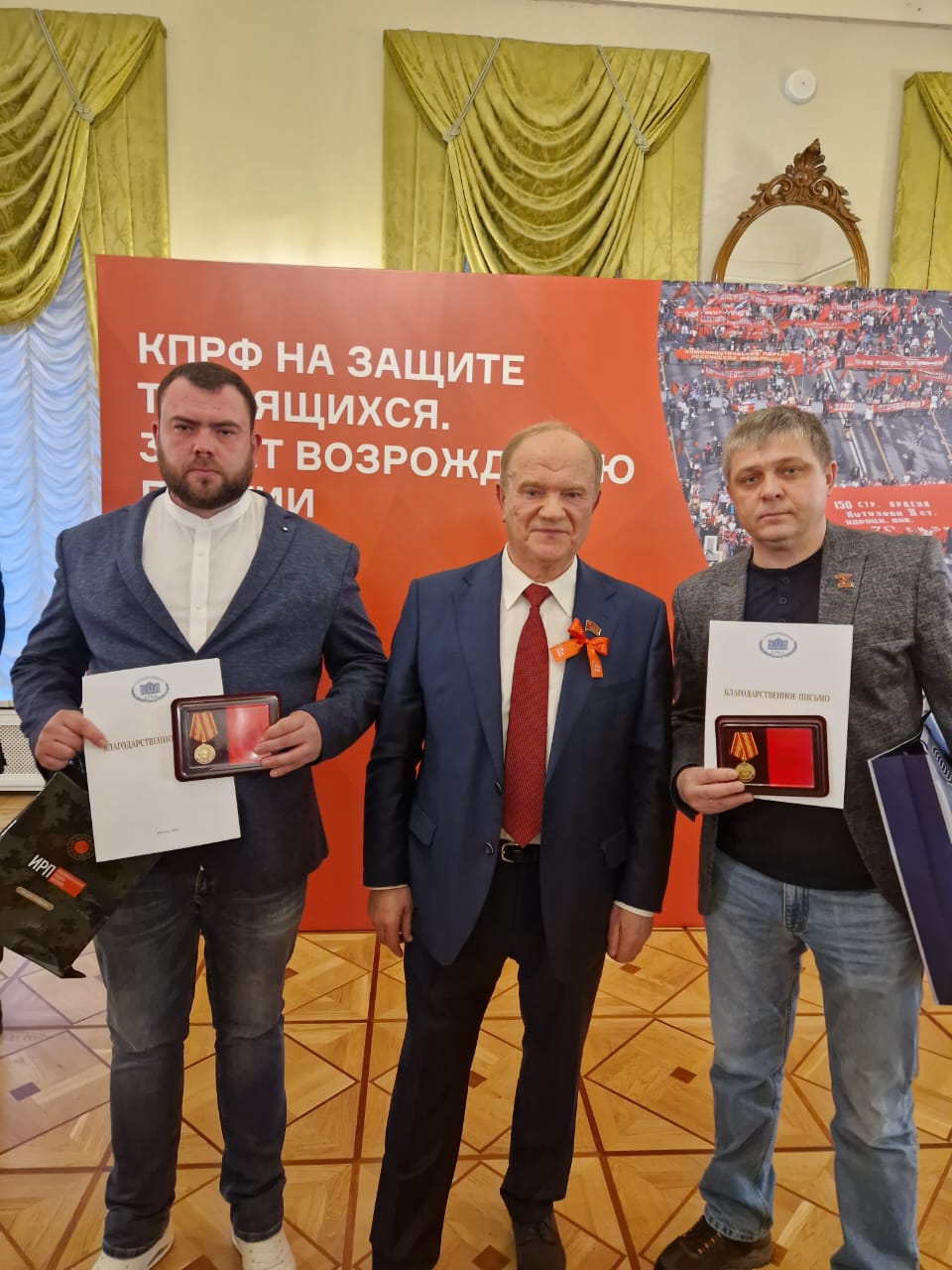 Выражаем слова благодарности Геннадию Андреевичу Зюганову, Сергею Анатольевичу Гаврилову за тёплый приём и содействие в решении проблемных вопросах волонтёрства, за высокую оценку нашего вклада в победу. Надеемся на дальнейшее взаимное сотрудничество в этом направлении деятельности!»