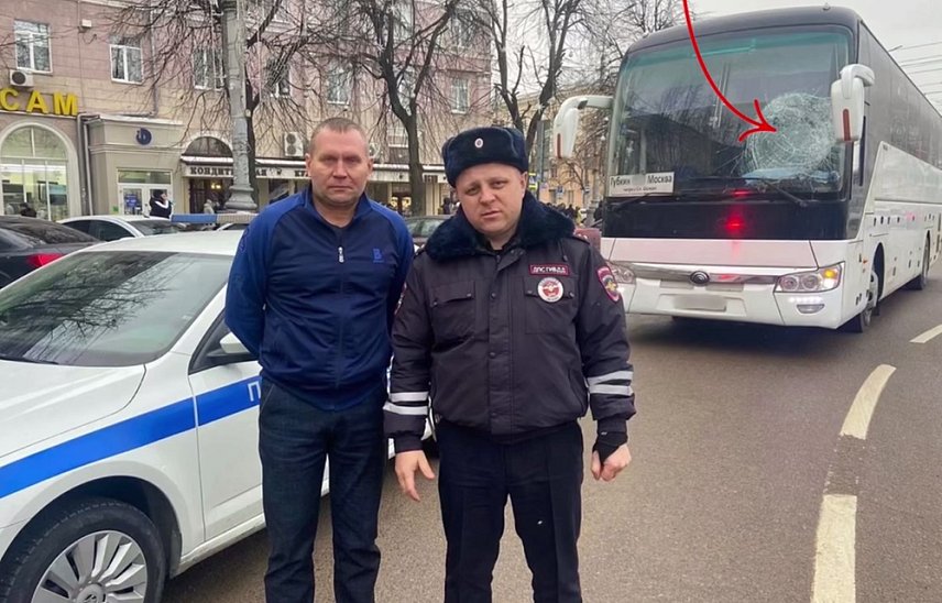 6 декабря под Воронежем на автодороге Р-298 наряд полиции заметил стоявший на обочине автобус «Юйтун». Водитель пояснил, что ехал по маршруту Губкин – Москва и с крыши проезжавшего мимо грузовика автомобиля упал лёд и повредил лобовое стекло. Обзор у водителя был максимально затруднён и он не мог ехать.