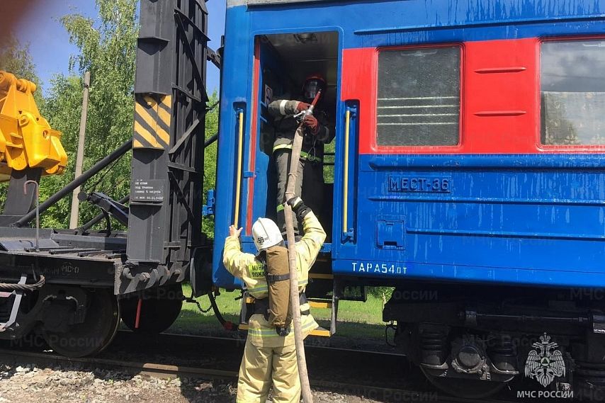 Сотрудники МЧС провели тренировку по тушению пожара и проведению аварийно-спасательных работ на железнодорожном транспорте.