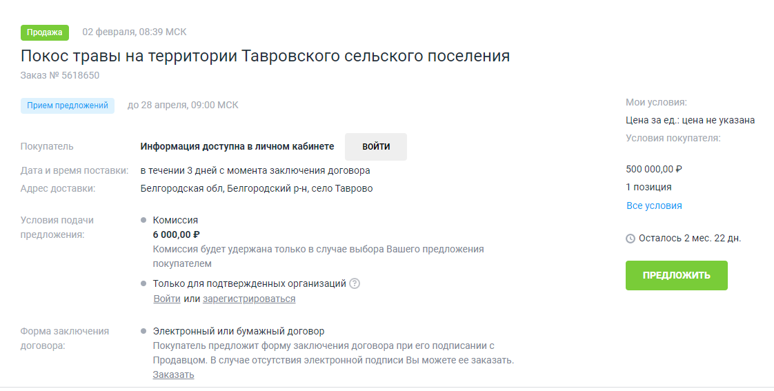 Подрядчик должен подать заявку до 28 апреля, а оказать услуги — в течение трёх дней после заключения договора, то есть, предположительно, он завершит косьбу уже в начале мая.