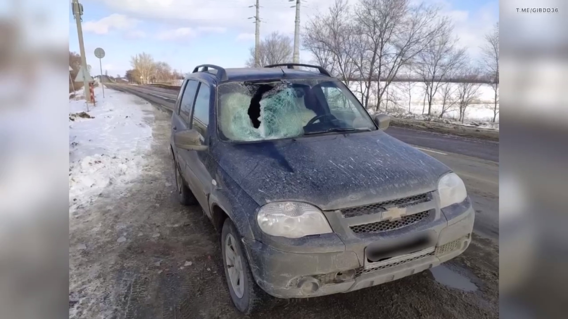 Видеорегистратор в машине зафиксировал, что от попадания льда стекло разлетелось на мелкие осколки. Женщина, сидевшая на переднем пассажирском сиденье, получила серьёзные травмы, из-за чего её пришлось немедленно госпитализировать.