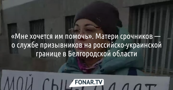 Мы пообщались с несколькими матерями солдат-срочников, которые проходят службу в Белгородской области на российско-украинской границе. Молодые россияне регулярно попадают под обстрелы со стороны Украины, и матери за них очень переживают, поэтому обращаются в прокуратуру, к властям и публикуют видеообращения.