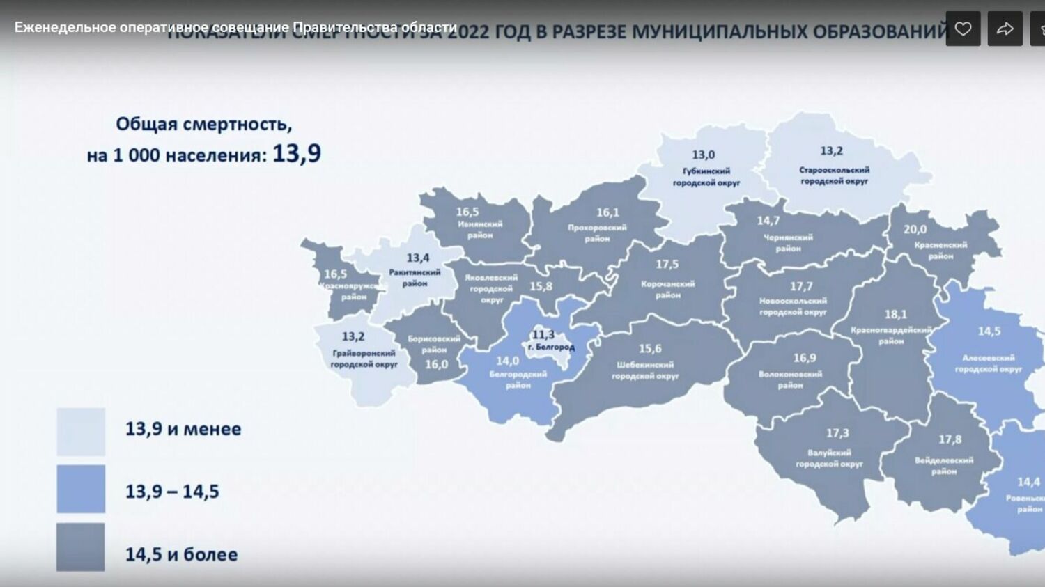 Белгородстат поделился данными о демографической ситуации в регионе по итогам 2022 года. Специалисты сравнили полученные цифры с результатами 2021 года. Так, в регионе в прошедшем году погибли 21,8 тысячи человек. Это на 22,4 процента меньше, чем в 2021 году. При этом реже всего люди погибали в Белгороде, где показатель составил 11,3 процента. В Грайворонском горокруге цифра снизилась до 29,9 процента, в Старооскольском городском округе смертность упала на 24,6 процента, в Губкинском городском округе — на 24,3 процента. Ранее в региональном минздраве сообщали, что области не удалось выполнить один показатель по нацпроекту, связанный с уровнем детской смертности.