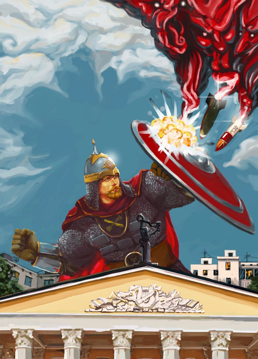 Женское движение «Катюша» ( в СМИ и медиа стали заметны с 2022 года, официально называют себя «мягкой силой» — прим. Ф.) предлагает украсить центр Белгорода муралом, посвящённом бойцам ПВО. Эскизом работы поделилась пресс-служба мэрии. На картинке нарисован богатырь, который щитом закрывает мирный город от летящих ракет (у некоторых пользователей возникли ассоциации с героем американских комиксов — прим. Ф.). Изображение должно появиться на фасаде стоматологической поликлиники № 1 на улице Преображенской.