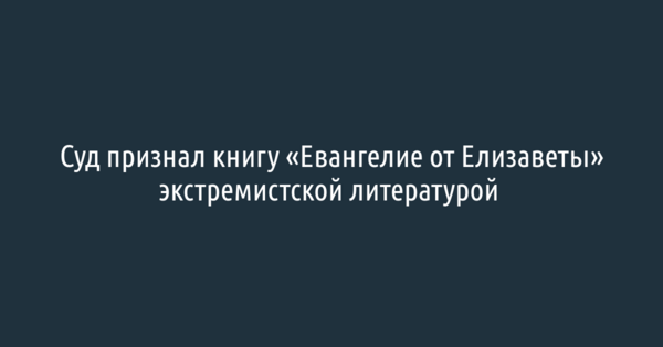 Белгородский суд признал книгу «Евангелие от Елизаветы» экстремистской литературой