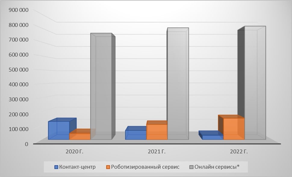 Если в 2020 году операторы принимали более 130 тысяч звонков, то в 2022 году — уже 30 тысяч. В то же время наблюдается обратная тенденция по загрузке голосового помощника.