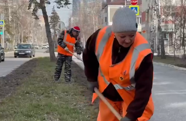 Фото: "Уютный Белгород" После зимы газон нуждается в особом уходе Рабочие удаляют сорняки, обрезают кусты и деревья, вывозят порубочные остатки.