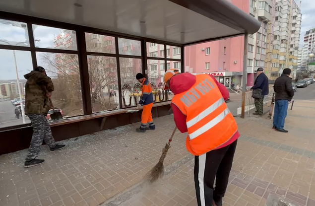 Сотрудники Белгорблагоустройства устраняют последствия ночного обстрела Белгорода