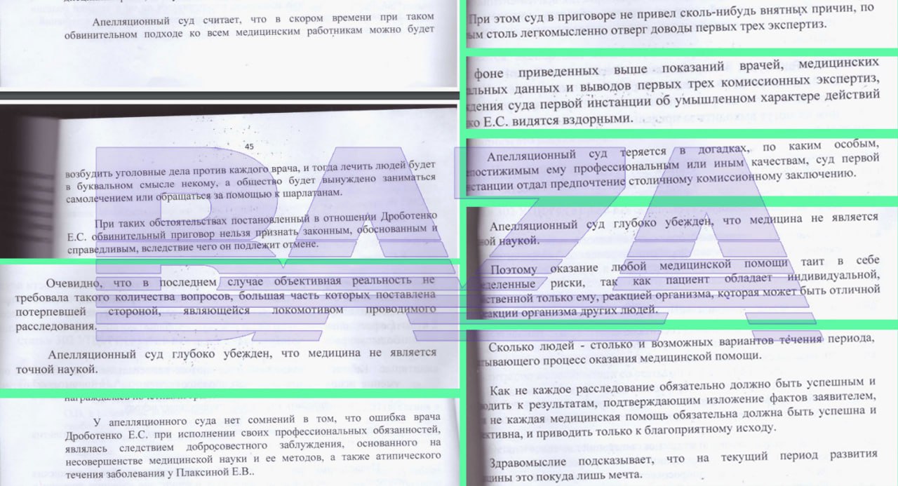 Ранее мы рассказывали о том, что врач-гинеколог избежала реального наказания из-за того, что у дела вышел срок давности. Напомним, что инцидент произошёл в 2020 году. В больницу за помощью обратилась Оксана П*, её дочь жаловалась на острые боли в области живота. В итоге из-за неправильно поставленного диагноза врачей девушка потеряла левый яичник и фаллопиеву трубу. Ей провели вторую операцию и назначили гормонотерапию, восстановительные процедуры потерпевшая проходит до сих пор. Чтобы добиться наказания для медика, мать пострадавшей обращалась в полицию, выходила на одиночный пикет, пыталась попасть на приём к председателю Следственного комитета Российской Федерации Александру Бастрыкину, добивалась независимой экспертизы. «Фонарь» рассказывал о преследовании привлечённого эксперта и объявлении её в уголовный розыск. Оксану П* смутили формулировки в апелляционном постановлении суда. Так, например, в нём сказано, что «апелляционный суд глубоко убеждён, что медицина не является точной наукой», а судья «теряется в догадках, по каким особым непостижимым ему профессиональным или иным качествам суд первой инстанции отдал предпочтение столичному комиссионному заключению» о вине врача. Кроме того, согласно этому решению, оказывается, «не каждая медицинская помощь должна быть успешна и эффективна и приводить к благоприятному исходу».