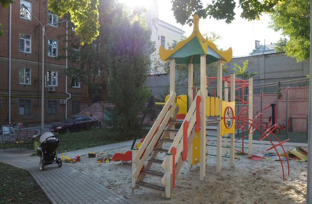 Строители отремонтировали проезды и тротуары, систему наружного освещения, установили детскую площадку и комплекс для воркаута.