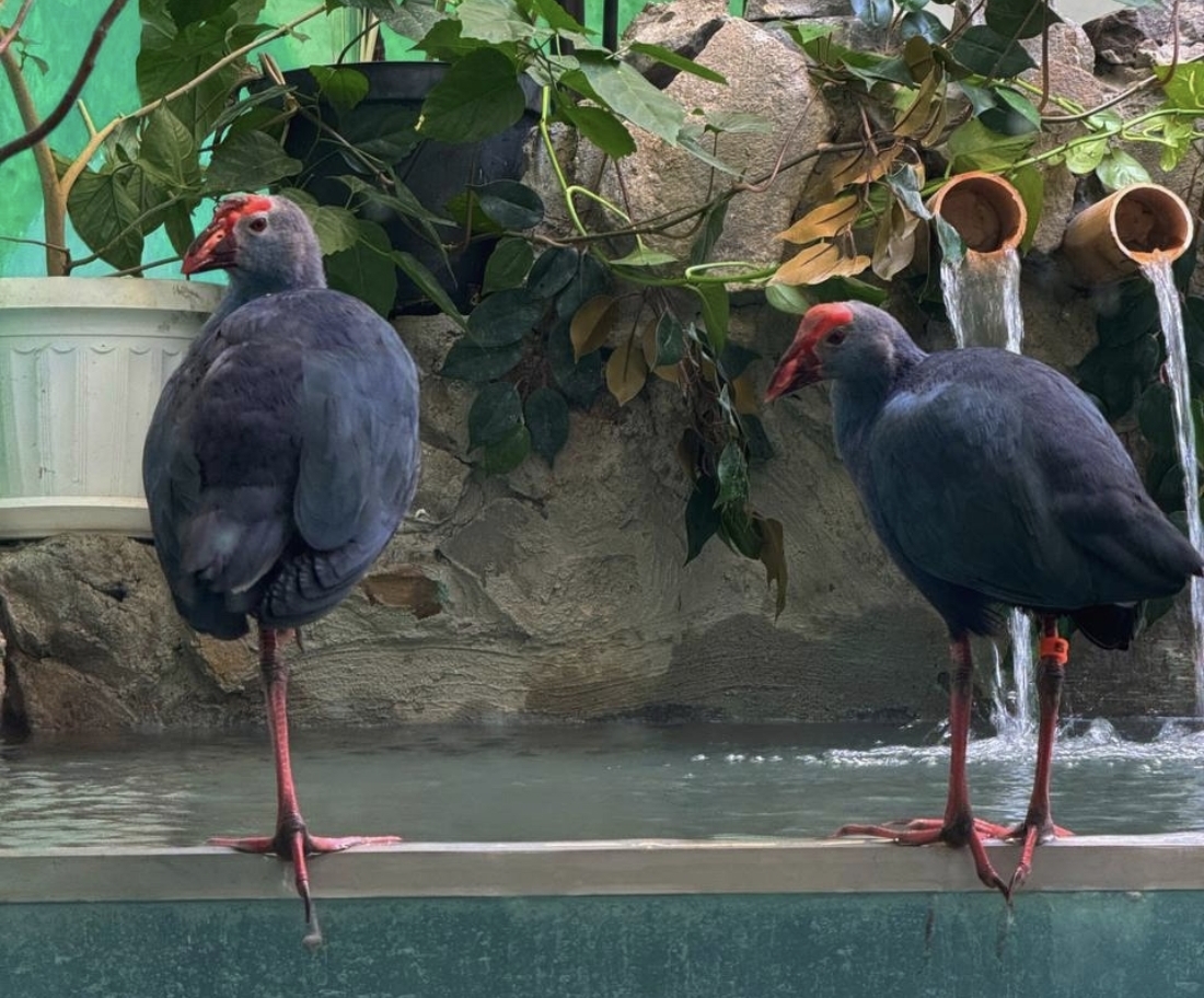 Султанки — редкий вид, занесённый в Красную книгу. Увидеть новых обитателей зоопарка можно в экзотариуме напротив лемуров.