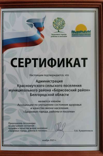 В члены Ассоциации по улучшению состояния здоровья и качества жизни населения "Здоровые города, районы и поселки" приняли администрацию Краснокутского сельского поселения Борисовск