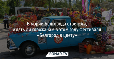 Жители Белгорода задались вопросом: ожидать ли в этом году фестиваля «Белгород в цвету»? Ранее администрация города заявляла, что проведение фестиваля будет зависеть от оперативной обстановки. Как выяснили журналисты ИА «Бел.Ру», мэрия приняла решение приостановить проведение массовых мероприятий из-за сложной оперативной обстановки. Это стало известно 21 июля.
