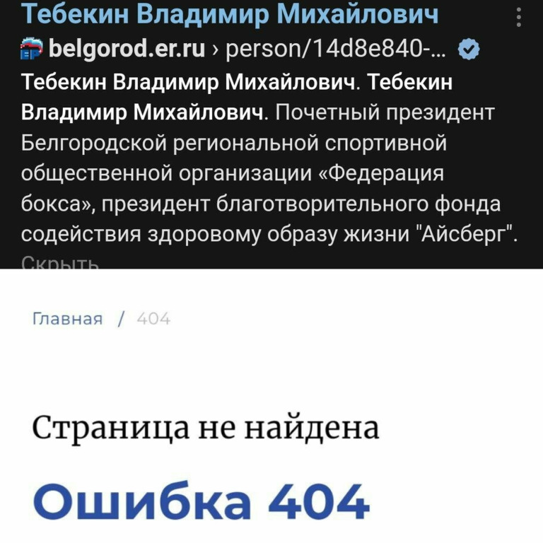 На сайте Белгородского регионального отделения «Единой России» исчезла страница, которая рассказывала о деятельности Владимира Тебекина. Влиятельный бизнесмен входил в президиум регионального политического совета партии. Согласно открытым данным , в ходе тайного голосования его кандидатуру единогласно поддержали все члены регионального политсовета в 2018 году. Тогда же указывалось, что белгородец является почётным президентом «Федерации бокса», президентом благотворительного фонда содействия здоровому образу жизни «Айсберг» и секретарём первичного отделения № 17 в городе Шебекино.