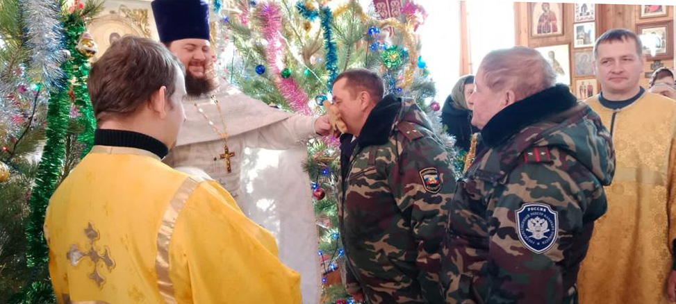 Рождественское богослужение в храме святого апостола Андрея Первозванного села Айдар посетили казаки