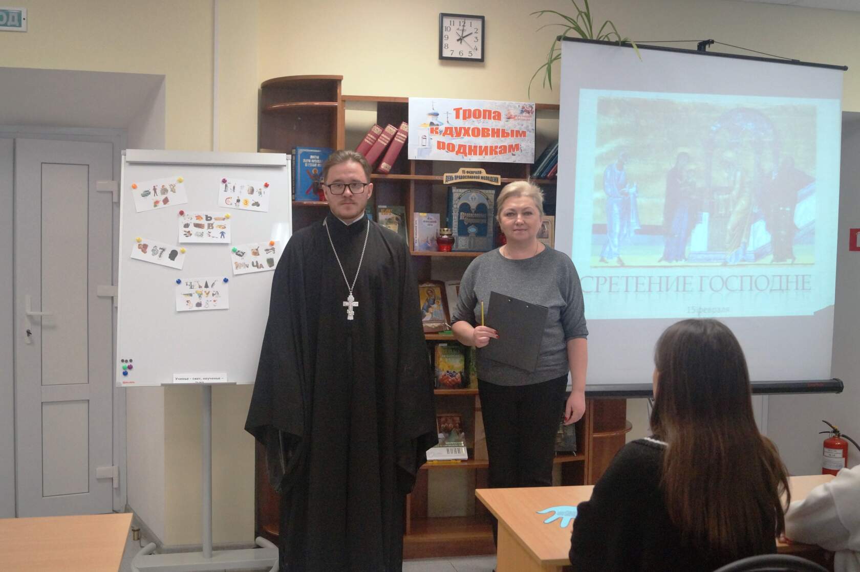 15 февраля в городской модельной библиотеке №1 города Алексеевка собрались школьники ООШ №5, чтобы отметить День православной молодежи. Для ребят был проведен час духовной культуры «Тропа к духовным родникам». Ведущая рассказала посетителям о создании организации «Синдесмос», которая объединила молодежные православные движения во всем мире. Клирик Свято-Троицкого кафедрального собора иерей Илья Левин поведал школьникам о церковном празднике Сретения Господня и ответил на многочисленные вопросы.