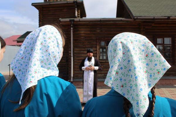 Священнослужитель окропил воспитанниц святой водой и пожелал терпения и успехов во всех добрых делах.