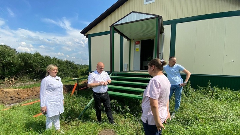 Строительство ФАПа в селе Мощеном, по словам министра, идёт активно. Строители обещают закончить все работы до октября.