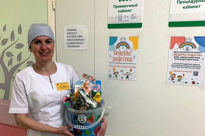 У любого человека процедурный кабинет больницы ассоциируется не с самыми приятными ощущениями, а у детей – тем более. Ребёнок, приходя на процедуры, начинает нервничать, расстраиваться и плакать. Чтобы скрасить эти неприятные моменты, в детских больницах Старого Оскола и Губкина появились «ведёрки радости». Юный пациент после процедуры получает игрушку за храбрость.